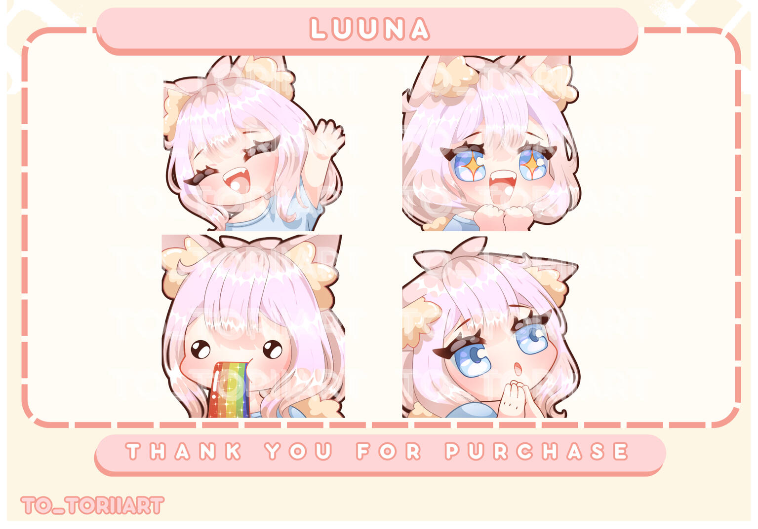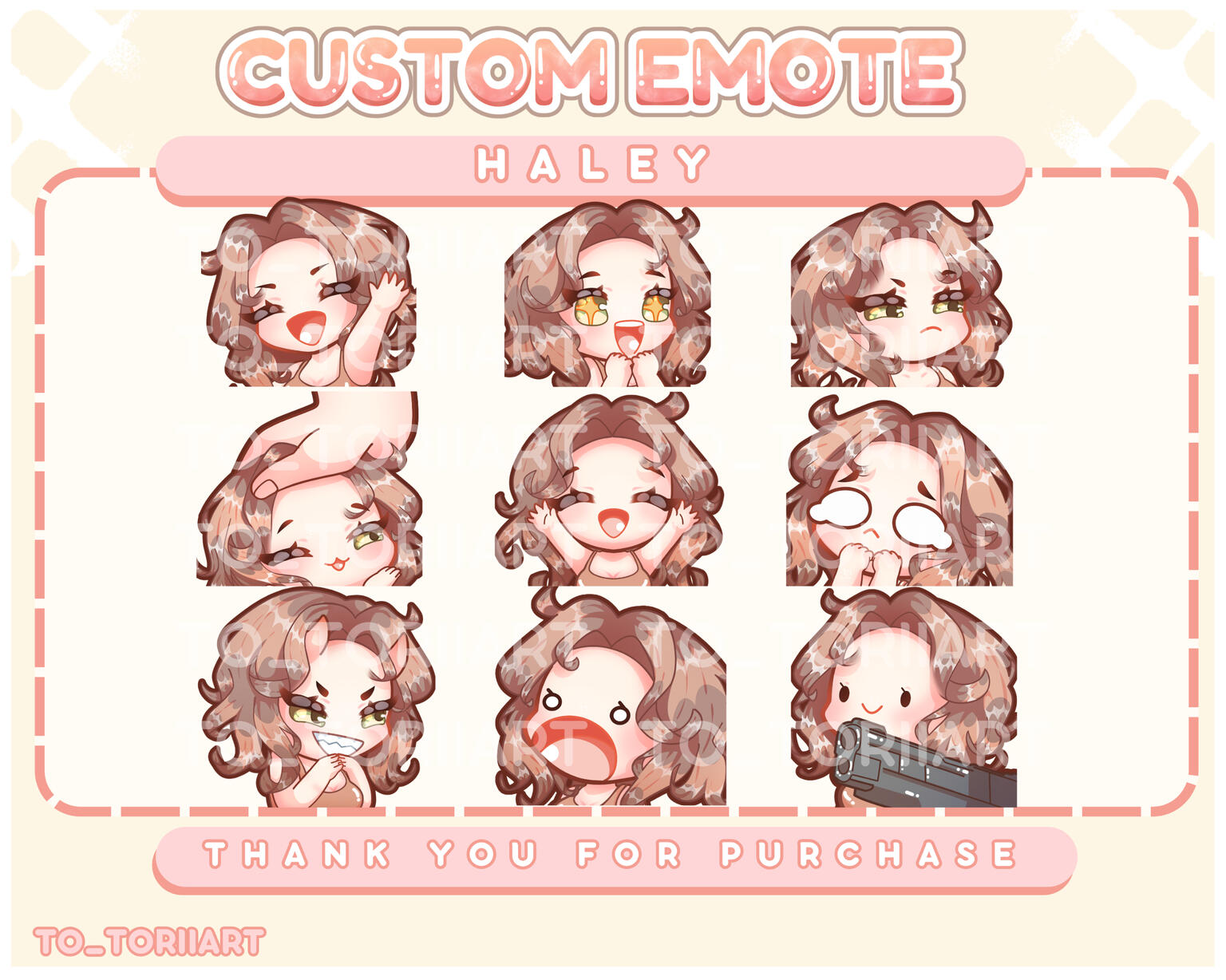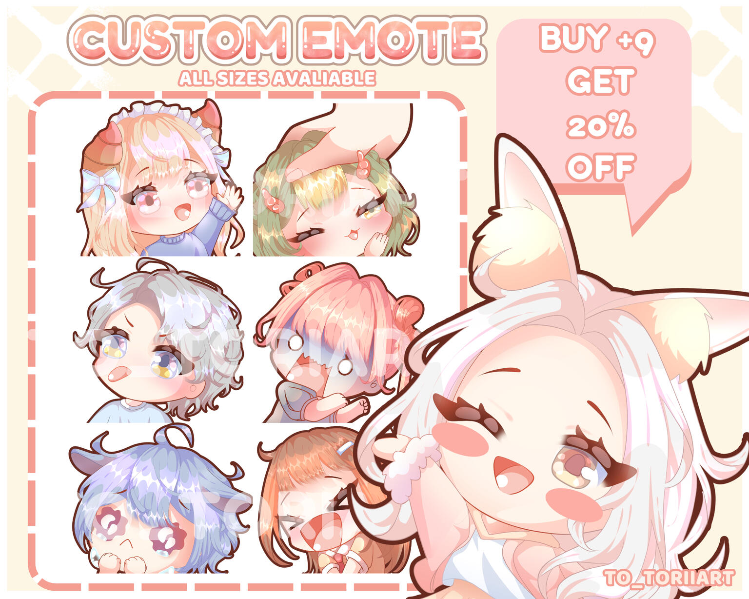 -You must send me an email to to.toriiartwork.com with the number of emotes you want to buy and a description and reference images that describe the character to be illustrated.EJ: